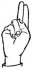 На ћирилици написано ВИШЕСЛАВ БЕКРИЋ састоји се из 14 слова [?]. Исписано ћириличном једноручном азбуком за глувонеме: